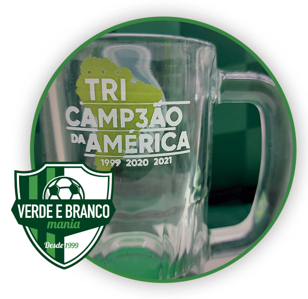 - Caneca tem o escudo da Sociedade Esportiva Palmeiras de um lado e do outro tem os dizeres: ” TRI CAMP3ÃO AMÉRICA 1999-2020-2021 “.
