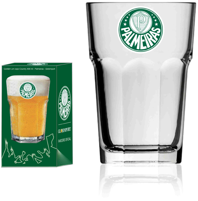Copo de Vidro Oficial Sociedade Esportiva Palmeiras Country Escudo 400ml.